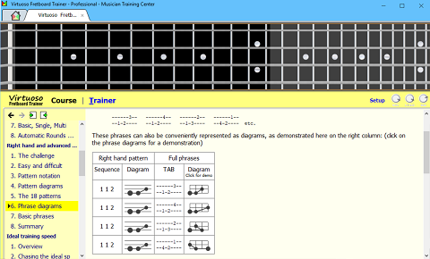 The Course manual included in the software contains information, examples, and step by step instructions on how to become a virtuoso player. |